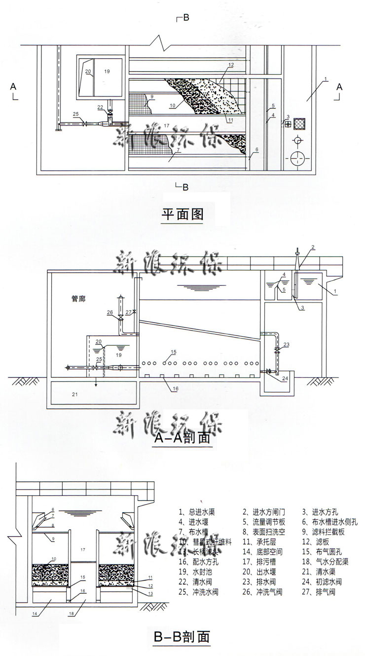 濾料使用壽命長,并設(shè)有多功能攔截裝置,正常10年不用添加和更換濾料,管理方便;